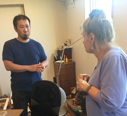 US Ceramist Barbara Allens with Inami Woodcarving Artisan Mr. Yoshisasda Ishihara