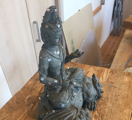 旅行の最大の出来事は、仏師石原良定さんの工房訪問と作品拝見でした。 私たちは幾つかの粘土見本を見て、石原さんから作品を完成させるまでに行う典型的な作業手順、試行錯誤を繰り返すこと、そのための時間について話を聞きました。